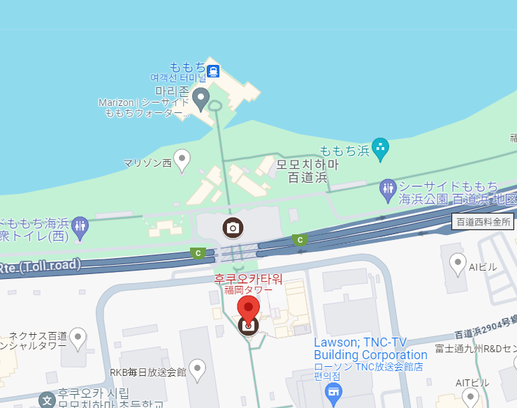 안자매의 출발 장소는 나카스카와바타역이었습니다. 저희는 지하철 + 버스를 이용하였습니다. 나카스카와바타역에서 공항선을 타고 후지사키역으로 이동했습니다. 후지사키역에서 306번 버스를 타고 후쿠오카타워 미나미구치 정류장에서 내렸더니 눈앞에 후쿠오카 타워가 보였습니다. 후쿠오카 타워를 지나서 걷다 보면 모모치 해변이 나온답니다. 택시를 타고 이동하는 사람들도 종종 보였지만 역에서 걸어오는 것은 절대 추천하지 않습니다. 매우 멀거든요. 안자매는 지하철 + 버스를 이용한 경로였지만 잘 모르겠다 싶으면 구글맵으로 검색하는 것을 추천합니다.